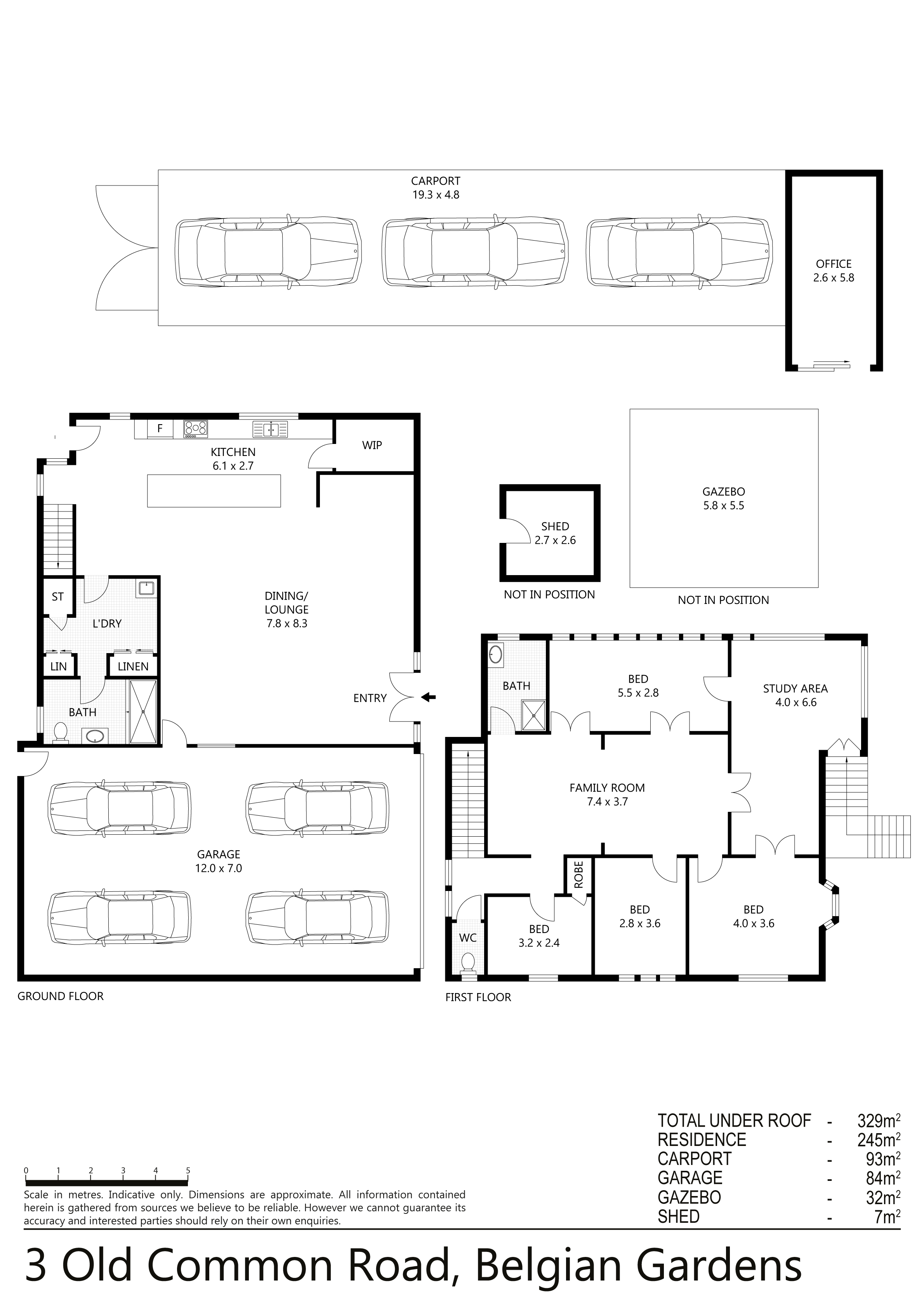 4 car lock-up and 2 car carport plus room undercover for a boat, caravan or camper trailer plus ample storage/workshop.