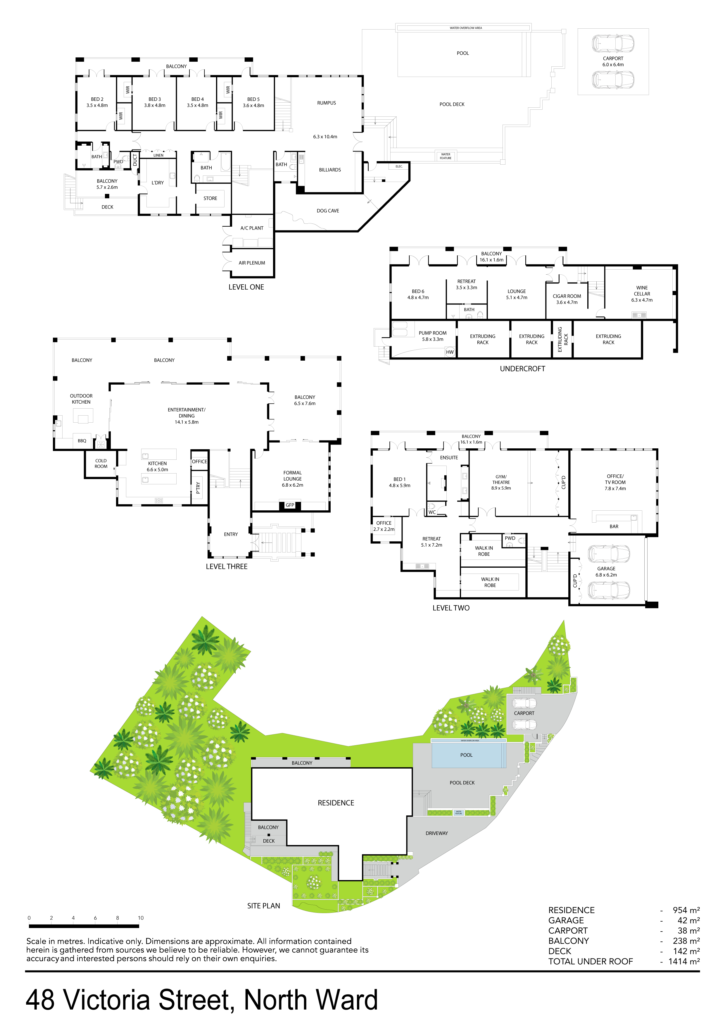 Five living areas with stunning views, cigar room and large fully insulated climate controlled wine cellar.