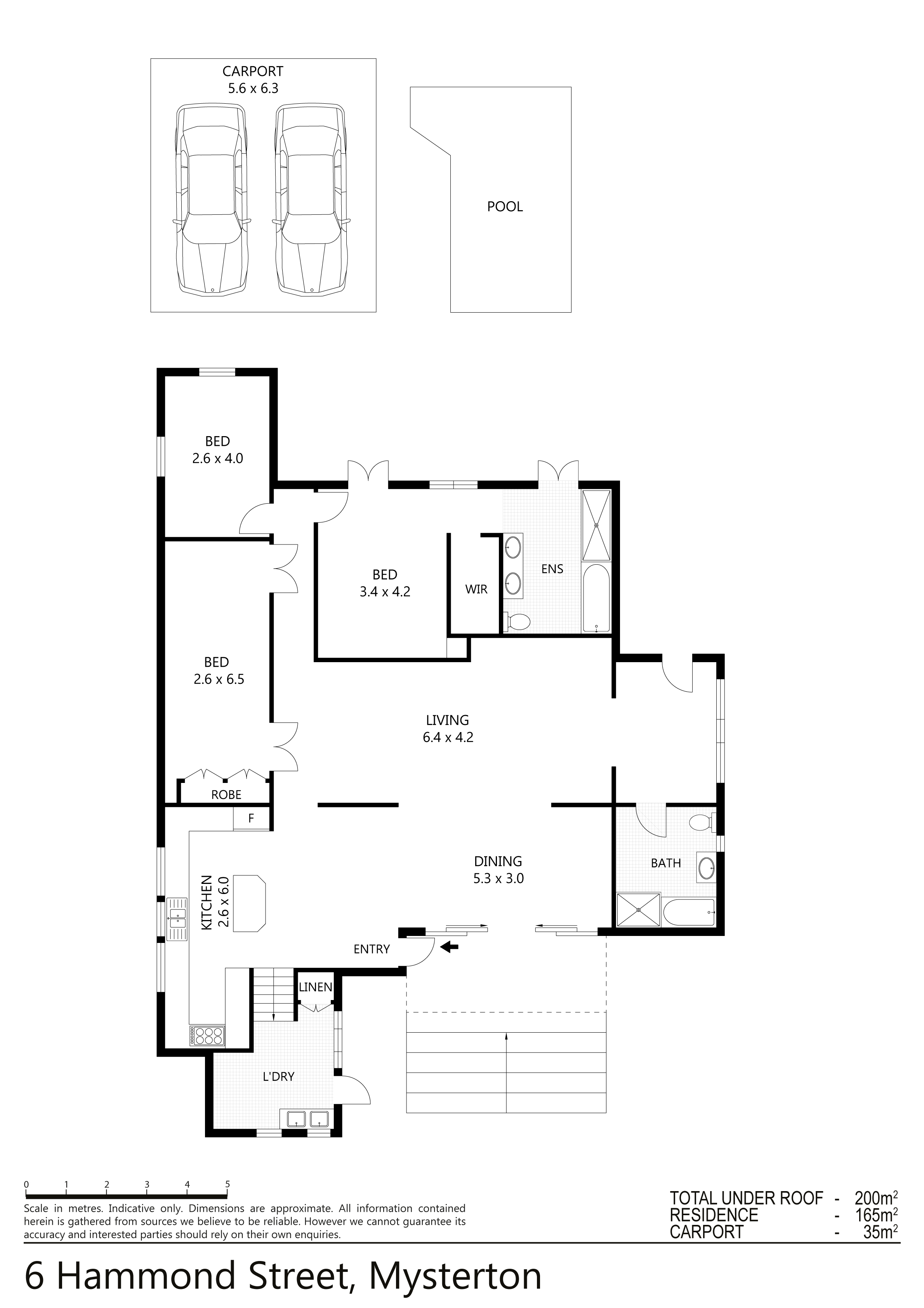 The residence offers 3 bedrooms, 2 bathrooms, 2 car carport.
